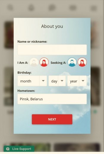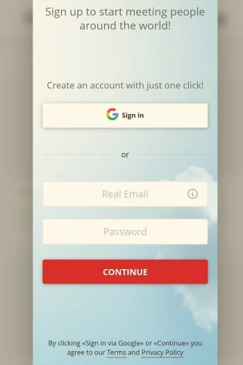 Бесплатно зарегистрироваться можно с помощью e-mail, Facebook или Google-аккаунта. Однако анкету в любом случае заполнить придется. Указывается стандартная информация: возраст, пол, место жительства, цели знакомства. По желанию описываются место работы, хобби, интересы. Конечно же, обязательно загрузить пару личных фото. Выбрать возрастные рамки партнера и можно приступать к поиску второй половинки.