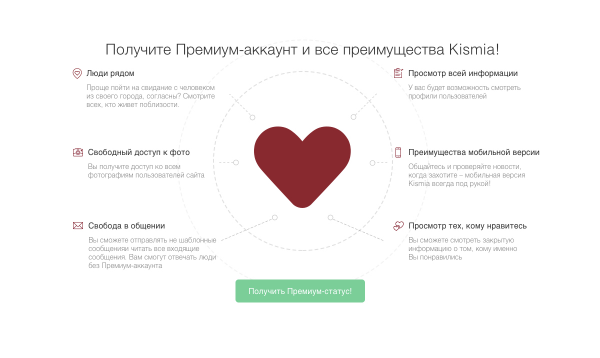 Как и на многих других сайтах знакомств в интернете — на Кисмиа.ру есть платный функционал. Это покупки Премиум и VIP-пакетов, которые открывают дополнительные возможности для общения.
