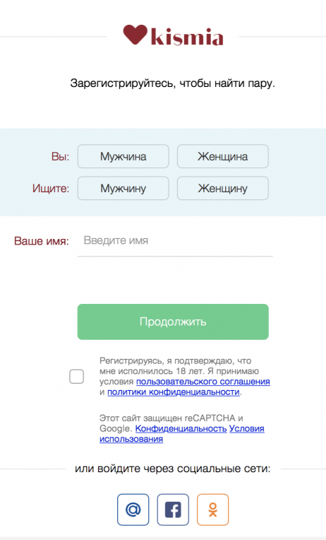 Kismia — масштабное комьюнити для всех, кто в поиске своей второй половинки. Главная миссия проекта — поиск пары для серьезных отношений и создания семьи. Но как показывает практика, здесь также знакомятся для общения, романтических свиданий и близких встреч. Выбор — за вами!