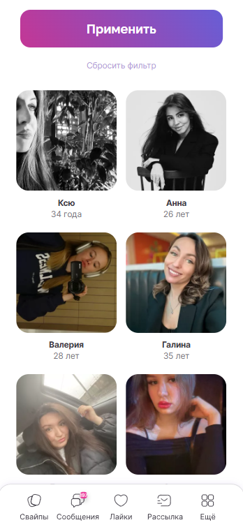 - расширенный поиск по критериям, таким как возраст, местоположение и цель общения