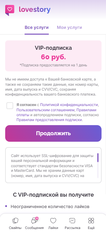 Что платно на сайте Love Story?
