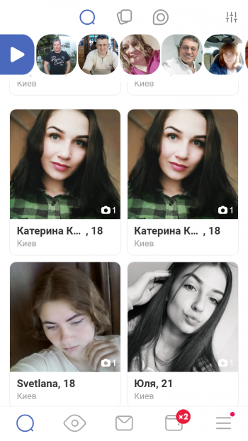- Симпатии (знакомства, основанные на лайках фотографий потенциального партнера);